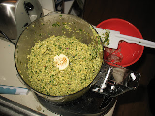 On to making the falafel. As a result of my aggressive chickpea soaking, I had almost twice as many chickpeas as I actually needed. This ended up being good, though, because the recipe amount would have limited the final product to one sandwich each: an insufficient amount, especially when it ended up being so good.